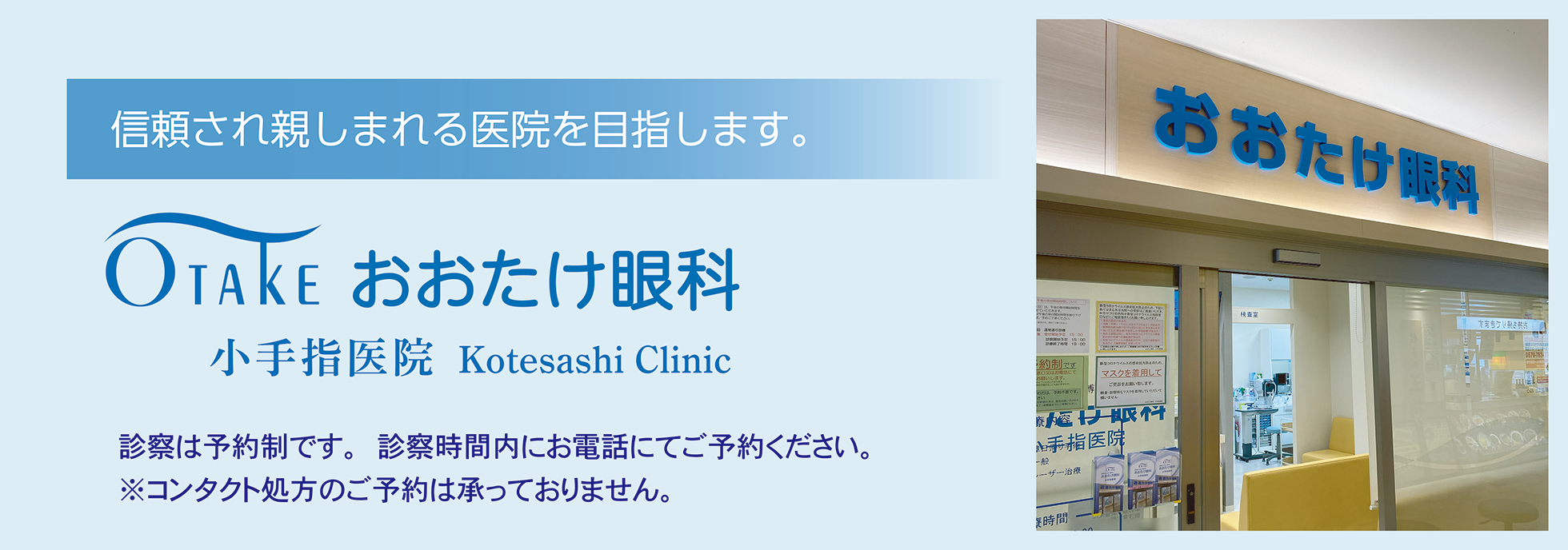 おおたけ眼科小手指医院は、患者様への説明を最も大切にする眼科です。 。当医院では最新の医療設備であらゆる目のトラブルを解決します。 特に白内障および眼瞼手術などは確かな設備が必要になるので投資を惜しみません。 高品質の医療サービスを提供して、患者様に安心していただくことが何よりも大切なことだと考えているからです。 安心だけでなく満足感も提供できることを一番に考えて、日々診療をさせていただきたいと考えています。